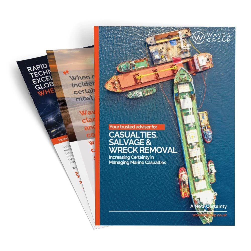 Our Salvage & Casualty Management brochure outlines Waves Group’s independent global response capability for marine incidents, including emergency mobilisation, SCR deployment, salvage engineering, wreck removal, pollution response and fire investigation.