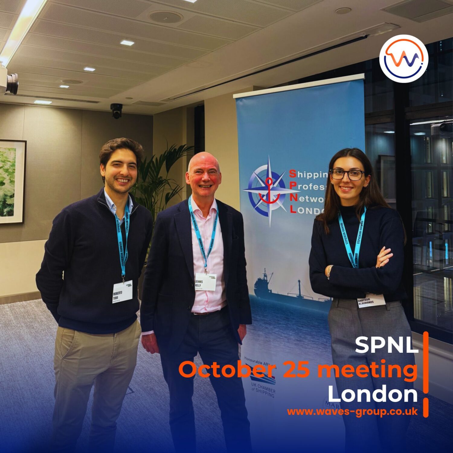 Last week, Waves Group’s Dennis Kelly, Chryssie Klavdianos, and Roberto Tuda Ortiz attended a packed panel hosted by the Shipping Professional Network London (SPNL), where industry professionals tackled some of the most pressing questions shaping shipping’s energy transition.